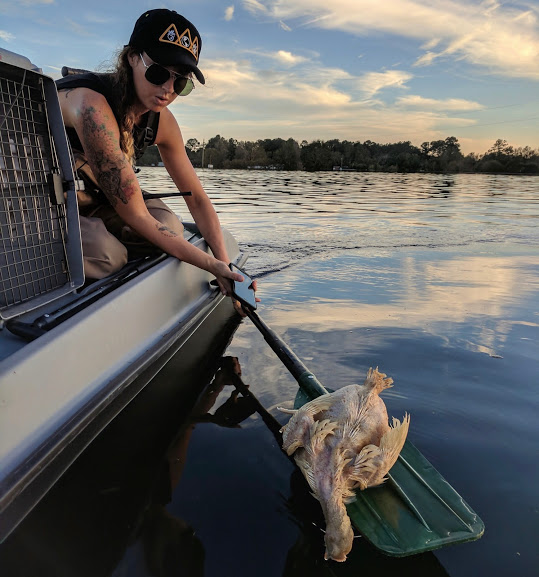 Liz Jones, bióloga marina y activista ha estado cubriendo la zona de desastre y me compartió su experiencia: «El silencio es lo único que se escucha mientras el bote de remo navega entre los cientos de cuerpos abandonados en las granjas factoría. El olor a muerte confirma que dentro de las instalaciones hay miles de pollos muertos. En tanto bajan las aguas, las facilidades que estaban rodeadas de seguridad para prevenir que los animales escaparan y que los rescatadores hicieran su labor, comienzan a abrir y podemos ver los cuerpos de las miles de víctimas olvidadas del Huracán Florence.»